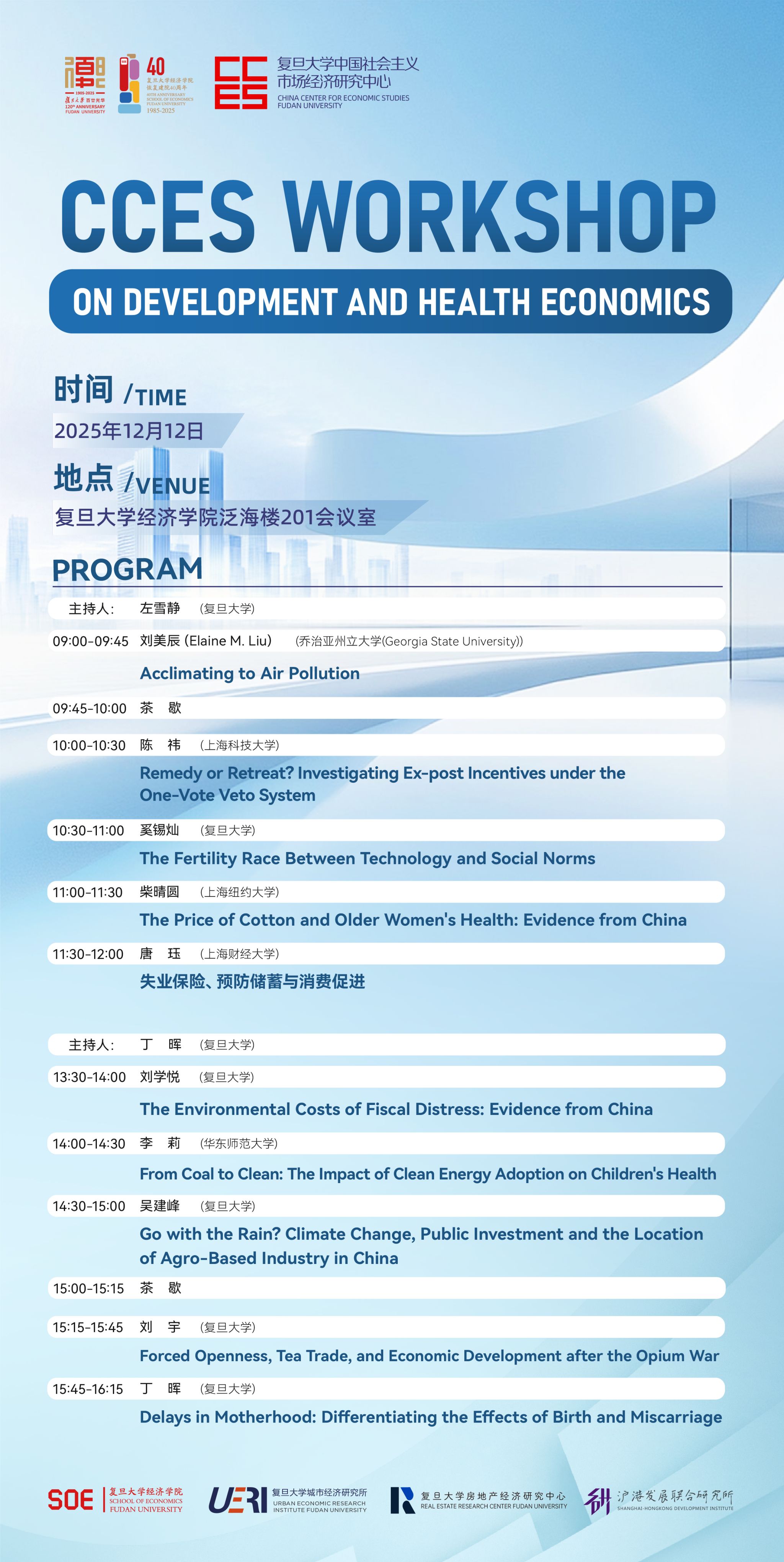 活动预告|CCES WORKSHOP ON DEVELOPMENT AND HEALTH...