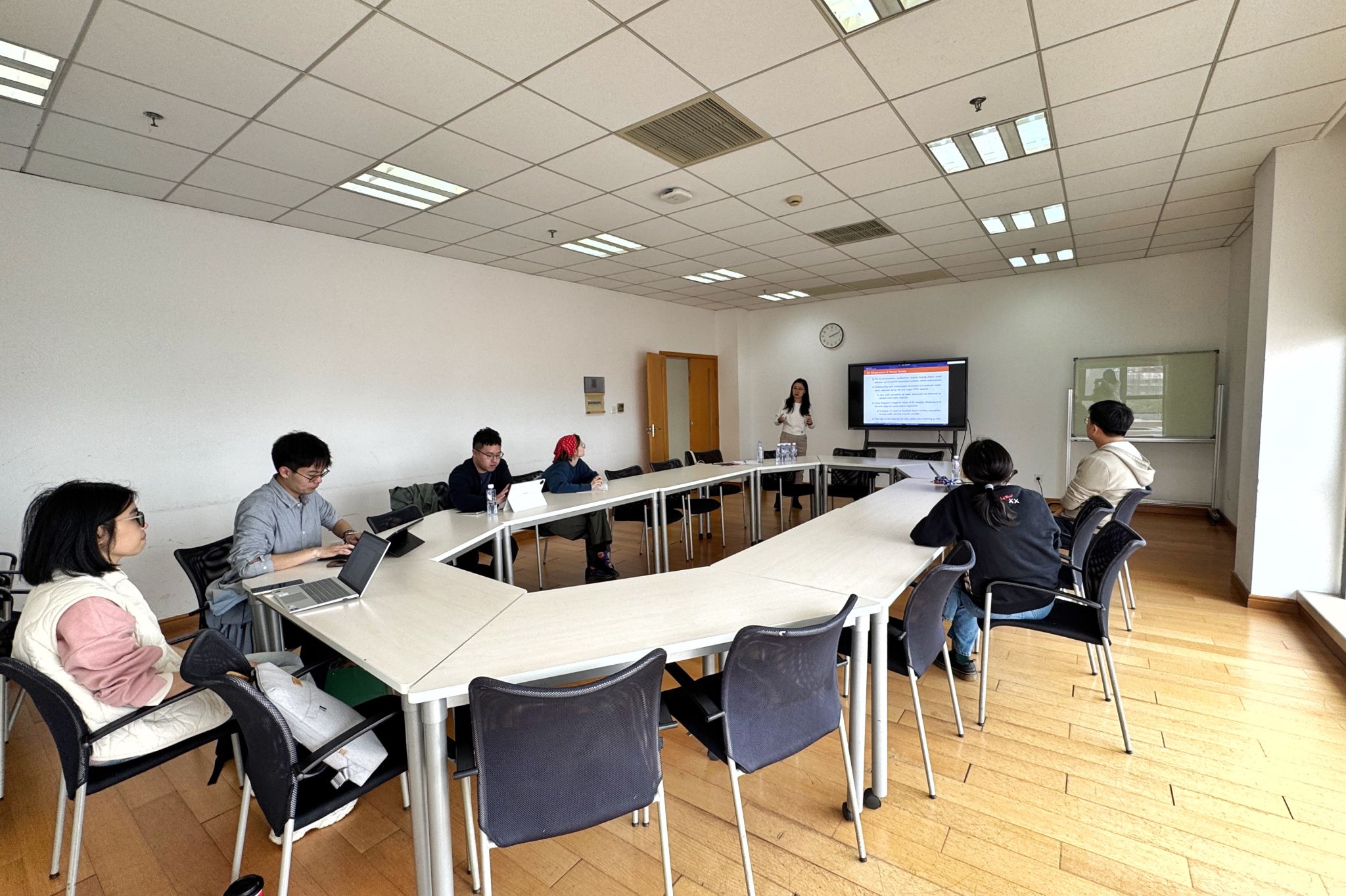 在随后的提问与讨论环节,与会师生围绕识别策略、机制检验、收入约束与异质性结果等问题与樊老师展开了深入交流。本次讲座从绿色基础设施建设出发,揭示了能源转型不仅关乎环境治理,也会深刻影响家庭消费、资产价格与城市包容性发展,为理解低碳转型背景下的家庭金融行为提供了新的研究视角,也为相关领域研究带来了有益启发。
