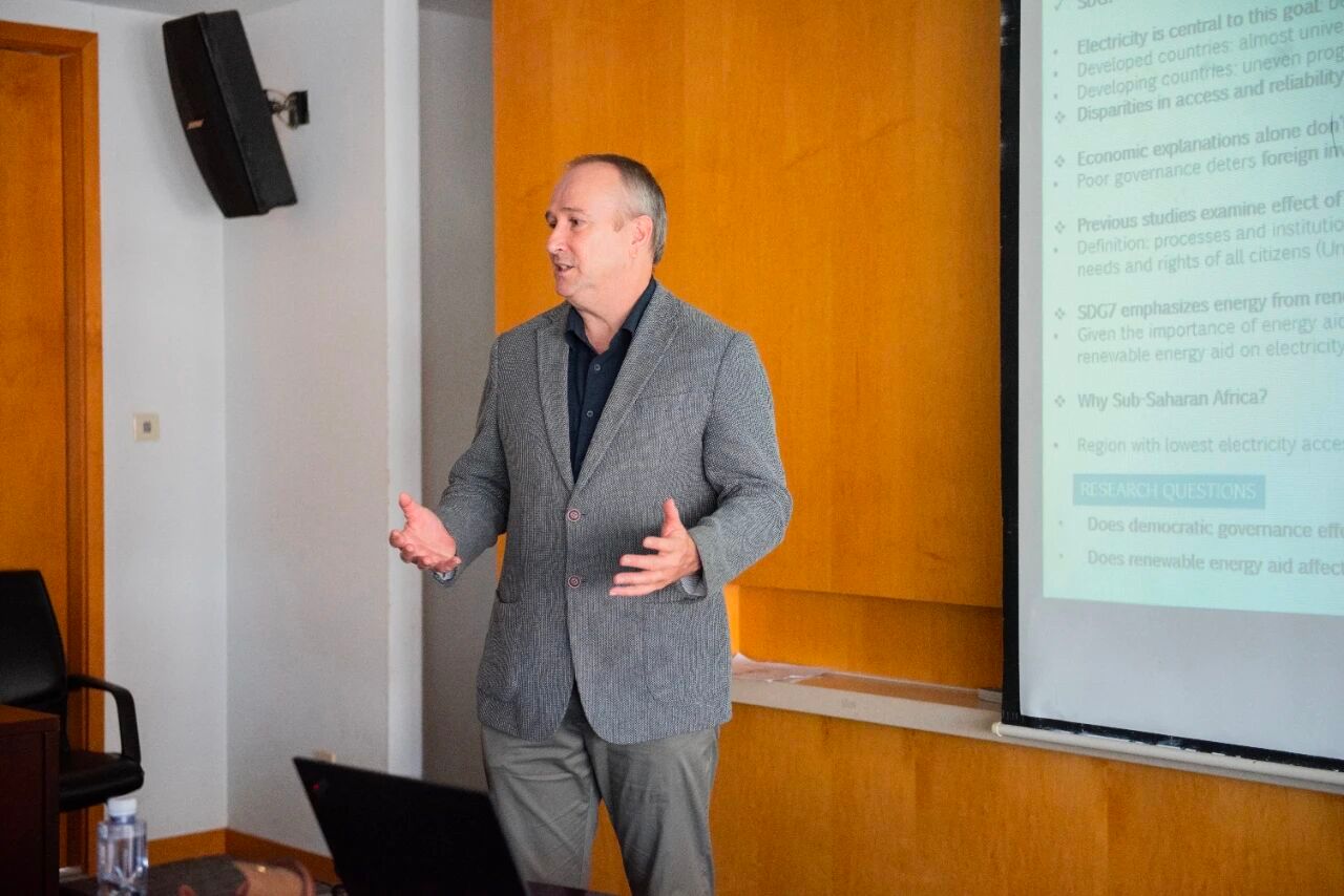 全南大学Alan Dixon Brown研究员分享的题目为“How Democratic Governance and Renewable Energy Aid Shape Grid Electricity Access and Quality in Sub-Saharan Africa”。该研究基于详实的非洲民意调查与民主治理数据,实证检验了不同形式的民主问责与可再生能源援助对撒哈拉以南非洲电力可及性与可靠性的影响。研究揭示,垂直问责(政府对民众负责)是提升电力接入与供电稳定性的积极因素;然而,水平问责(政府内部制衡)可能因决策流程复杂化而引发“制度僵局”,反而不利于电网稳定。值得注意的是,可再生能源援助并未有效改善主干电网的覆盖率,这说明其投资可能更多集中于离网项目。研究建议,国际能源援助必须与受援国的治理结构改革深度结合,并实施差异化策略。