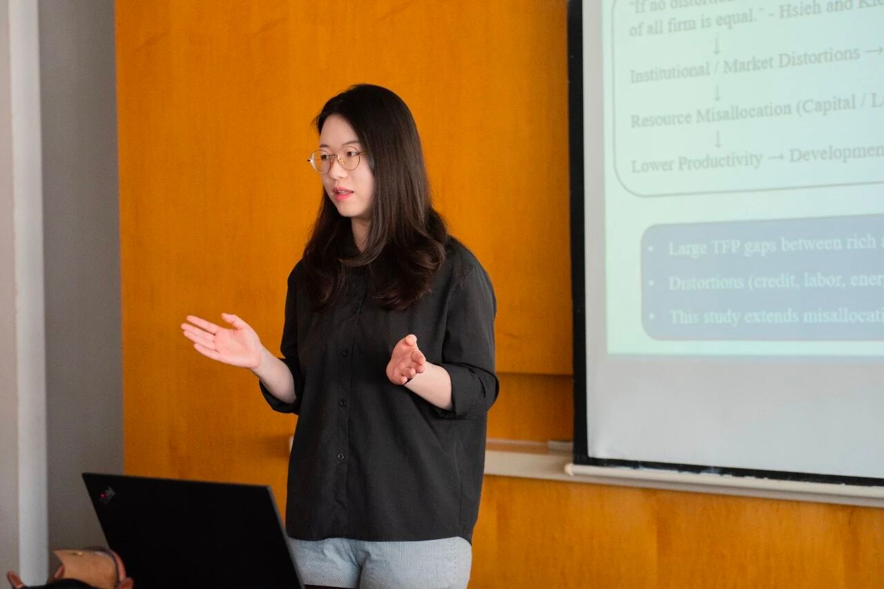 全南大学曲婧瑜博士后分享的题目为“Does Energy Factor Misallocation Affect the Efficiency of Total Factor Carbon Productivity?”。该研究创新性地构建了全球能源错配指数,并采用随机前沿分析方法测度全要素碳生产率,深入剖析了能源资源配置扭曲对碳效率的作用机制。研究证实,能源错配是拉低全要素碳生产率的关键因素,并且能源的过度配置与配置不足会对全要素碳生产率产生差异化影响。值得注意的是,2008年后,随着全球碳市场(如欧盟碳排放交易体系)等政策工具的推广,能源错配的负面效应呈现减弱趋势。这一发现表明,在追求绿色技术突破的同时,优化能源资源的配置效率对实现全球低碳转型具有同等重要的战略意义。