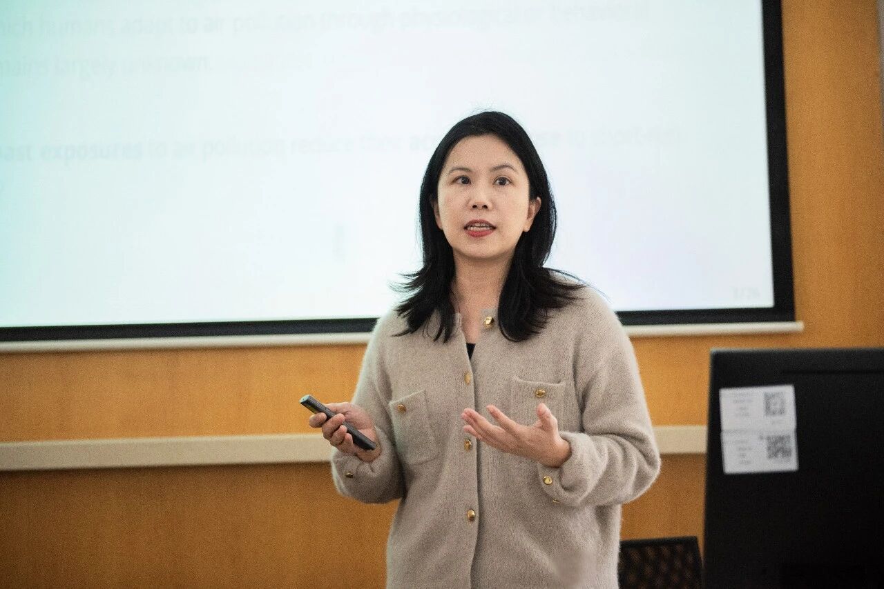 乔治亚州立大学的Elaine M. Liu分享了题为“Acclimating to air pollution”的研究。该研究关注学生在不同空气质量环境中成长所形成的生理适应性,以及空气污染对认知表现的差异化影响。不同于以往主要讨论污染对学业成绩的直接作用,本研究从生物机制出发,关注空气污染诱发生理性反应如何影响学生的考试表现。研究结合了2008—2016年北京某大学的考试成绩数据以及来自美国监测系统的逐小时PM2.5记录,识别了来自不同地区的学生课程成绩受环境污染的影响。研究结果显示,来自空气更清洁家乡的学生在大一时对污染更敏感:当PM2.5达到80μg/m3时学业成绩会受到明显负向影响;而来自污染较重地区的学生只有当PM2.5达到150μg/m3时才会受到显著负向影响。随着在北京学习时间增加,两类学生在大二及之后呈现出相似的污染–成绩反应模式,表明长期暴露后存在一定生理适应。该研究揭示了空气污染影响认知表现的重要适应机制,为理解环境暴露、学生表现及健康政策设计提供了新的视角。