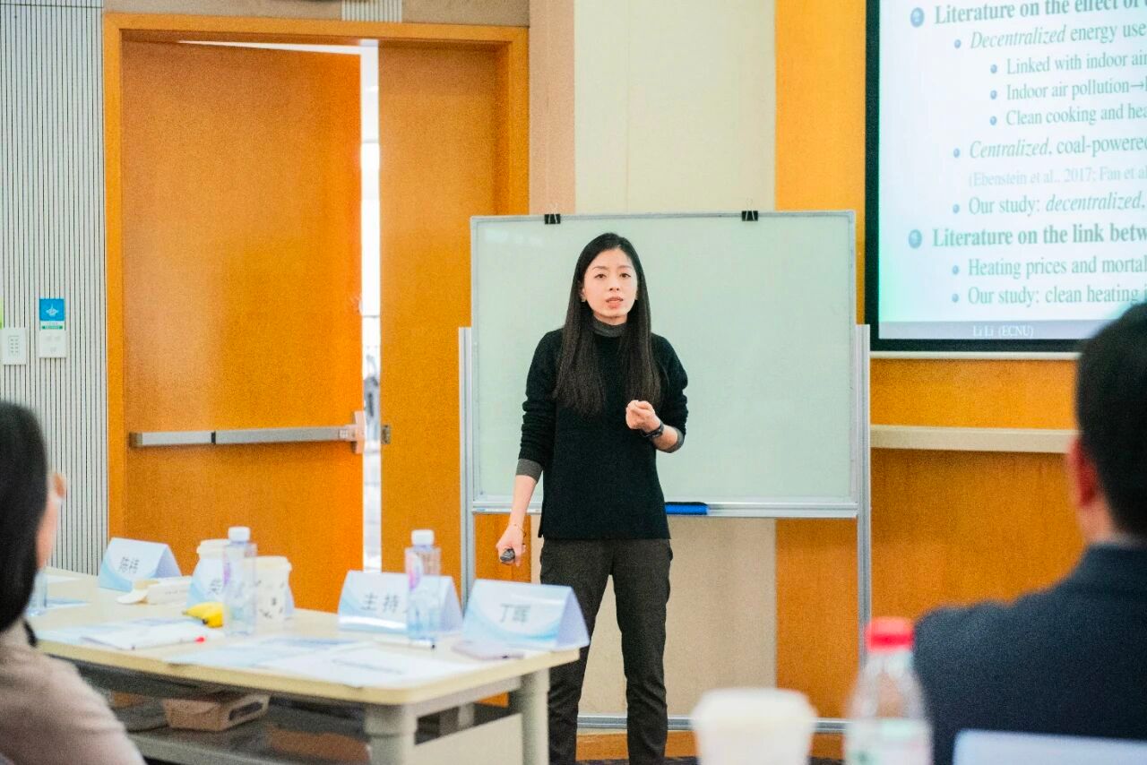 华东师范大学李莉汇报了题为 “From Coal to Clean: The Impact of Clean Energy Adoption on Children’s Health” 的研究,关注农村儿童呼吸道疾病与肺炎发病率问题。研究指出,儿童呼吸道疾病主要受低温和PM2.5影响,而改善室内空气质量可有效降低肺炎发病及住院率。研究基于河南某县农村地区的分散式清洁取暖推广,采用staggered DID设定,将已实施清洁取暖的村庄与未实施村庄进行比较。研究发现,清洁取暖显著降低了0—14岁儿童的肺炎发病率及相关住院支出,且在冬季气温低至约5°C时效果最为明显。该研究为评估农村清洁能源政策对儿童健康的长期收益提供了实证证据。