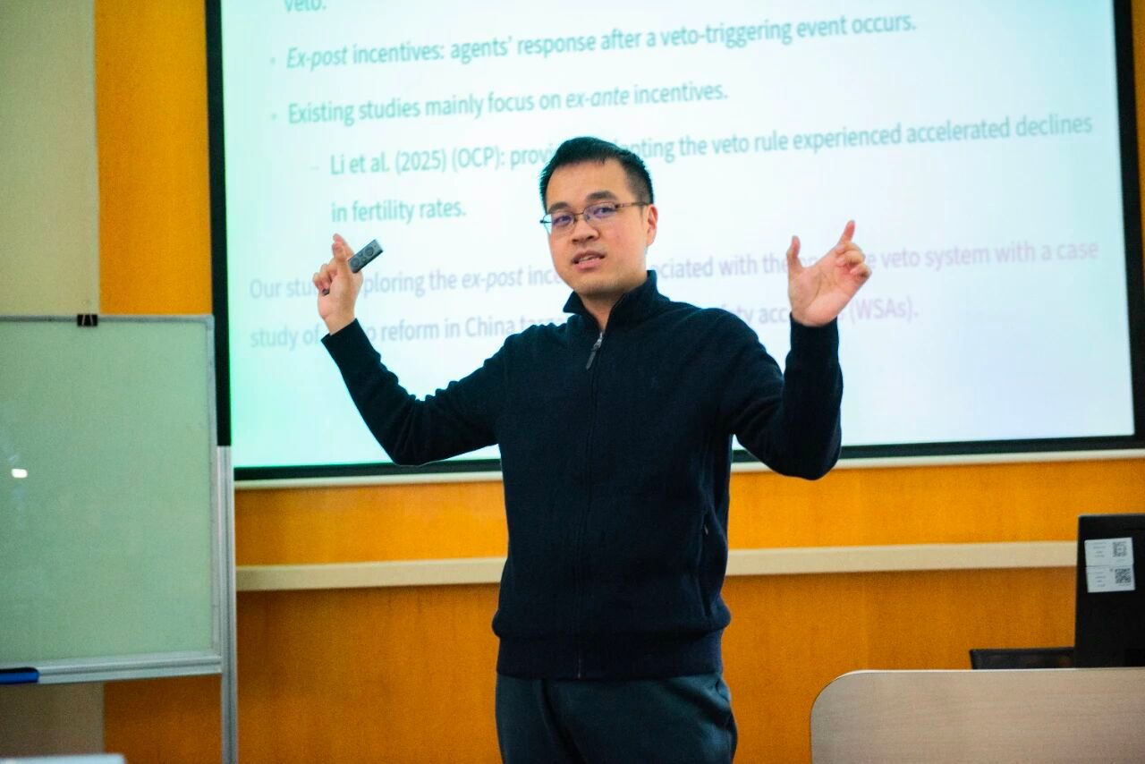 上海科技大学的陈祎分享了题为“Remedy or Retreat? Investigating Ex-post Incentives under the One-Vote Veto System” 的研究,探讨一票否决制度下地方官员在重大安全生产事故发生后的行为反应。不同于既有研究主要关注事前激励,该研究从事后激励角度分析官员是选择消极不作为,还是通过补救行为降低负面后果。研究以安全生产事故为情境,结合2018年正式实施的《地方党政领导干部安全生产责任制规定》,使用地级市层面的日度数据,并以企业注册数量衡量经济活动,采用事故发生当日为断点的回归不连续设计。结果显示,事故发生后官员晋升概率显著下降,但地区经济生产和环境表现反而有所改善,如新增的企业注册数量上升。表明地方政府可能通过事后努力进行弥补。此外,改革后年底政府“冲业绩式”通过新增企业注册现象更加明显。该研究为理解一票否决制度下地方官员的事后行为及其政策后果提供了新的经验证据。