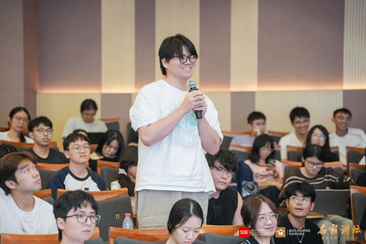 聆听张军院长“从世界看中国经济的未来”讲座,深受启发。他以全球视野切入,精辟剖析中国经济在全球格局中的韧性与挑战,强调深化改革与创新开放是应对变局的核心动力。其分析既有理论高度又具现实关怀,展现了经济学家的深刻洞察与学院领路人的责任担当。整场讲座内容丰赡,逻辑缜密,彰显复旦经济学院学术品牌的高度与深度,令人对新形势下中国经济的未来图景有了更清晰的认知和更坚定的信心。——税务专硕徐同学