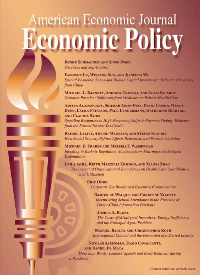 成果名称:Fangwen Lu, Weizeng Sun and Jianfeng Wu,Special Economic Zones and Human Capital Investment: 30 Years of Evidence from China,American Economic Journal: Economic Policy, 2023,15(3), 35-64.