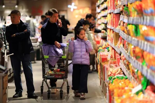 2025年12月15日,市民在江苏省淮安市一家生活超市购物消费。