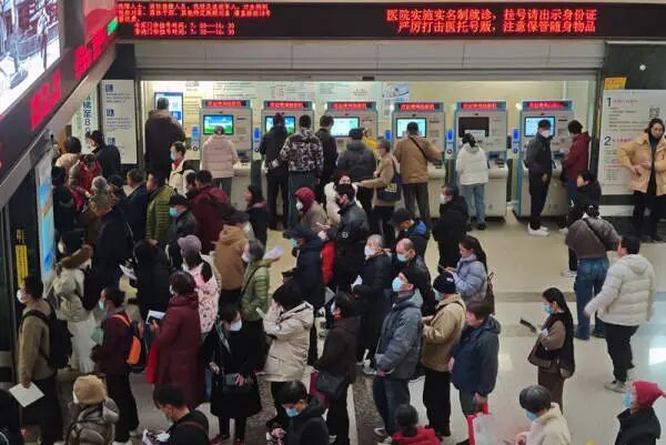 2025年12月22日,上海一三甲医院门诊大厅内,就诊者有序排队。