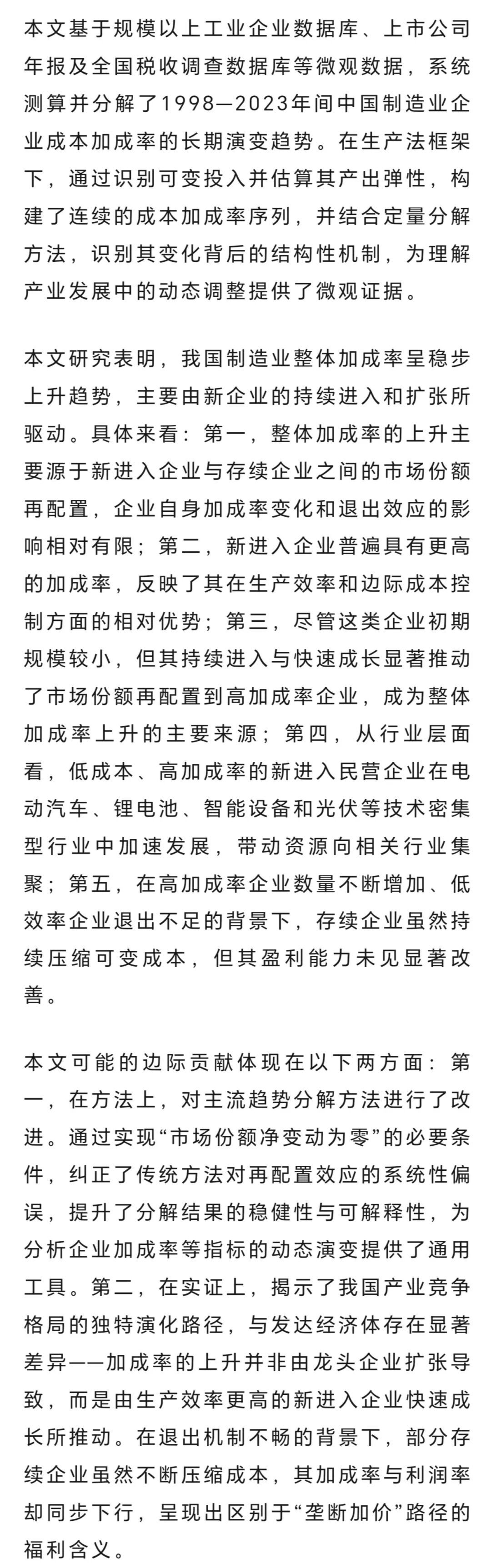 近日,经济学院刘志阔、陈诺、马欣榕的合作论文“中国企业的成本加成率测算和趋势分解:1998—2023”在《经济研究》2025年第4期发表。