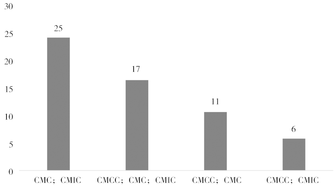 其次,美国在涉军框架下调整制裁思路,使得制裁对象高度集中,呈现出明显的交叉制裁属性。如图14所示,通过对企业名称去重处理后,本文发现涉军清单共计制裁110家中国实体。其中当CCMC清单停用后,被转入CMC与CMIC清单继续接受制裁的企业数量高达34家,占比近三分之一;而在早期未被CCMC清单覆盖,却在后续被CMC和CMIC清单联合制裁的企业数量,同样达到25家之多。从整体策略来看,交叉制裁不仅是对中国涉军企业实施多层次打击的重要表现,也是美国多部门协同制裁和清单间的互补尝试。其核心目标在于通过不断细化和更新的制裁手段,构建更加系统化的军工遏制框架,从而加强对中国军民两用技术及军工企业的全面封锁。