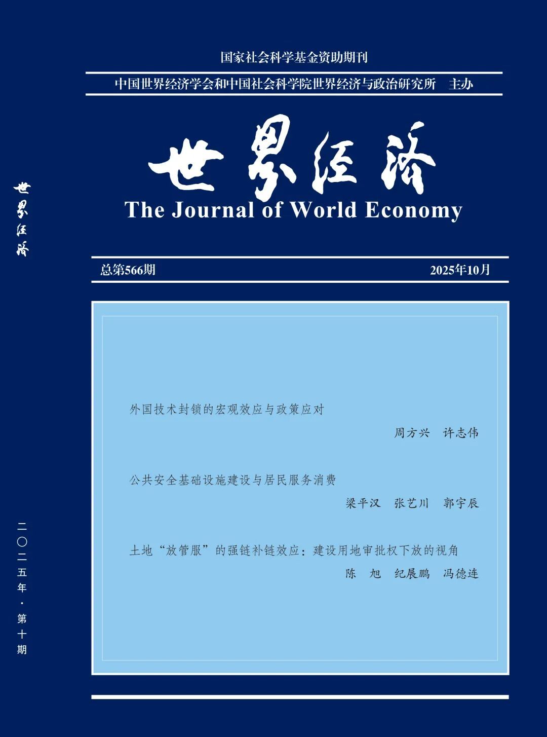 近日,复旦大学经济学院许志伟教授与复旦大学经济学院博士后周方兴合著的论文《外国技术封锁的宏观效应与政策应对》在《世界经济》2025年第10期正式发表。
